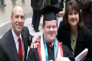 Patrick's dad spent his days attending classes on campus assisting his son while